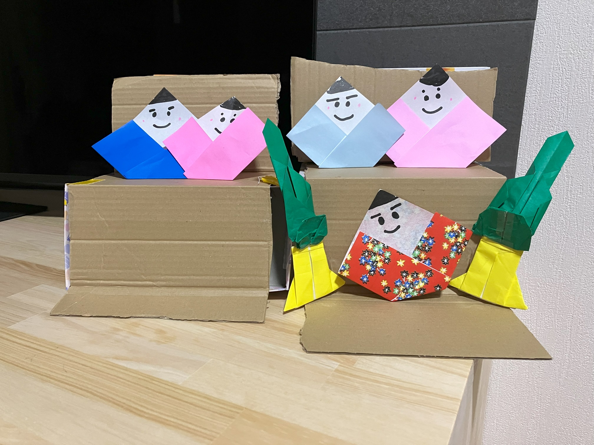 更に、子供たちが折り紙でひな人形を作ってくれました(^^)♪