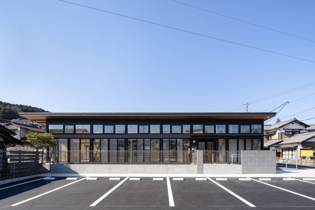 大きな窓を使用し、自然な光をオフィス内全体に取り入れ、木と光の調和がとれた建物になっています。