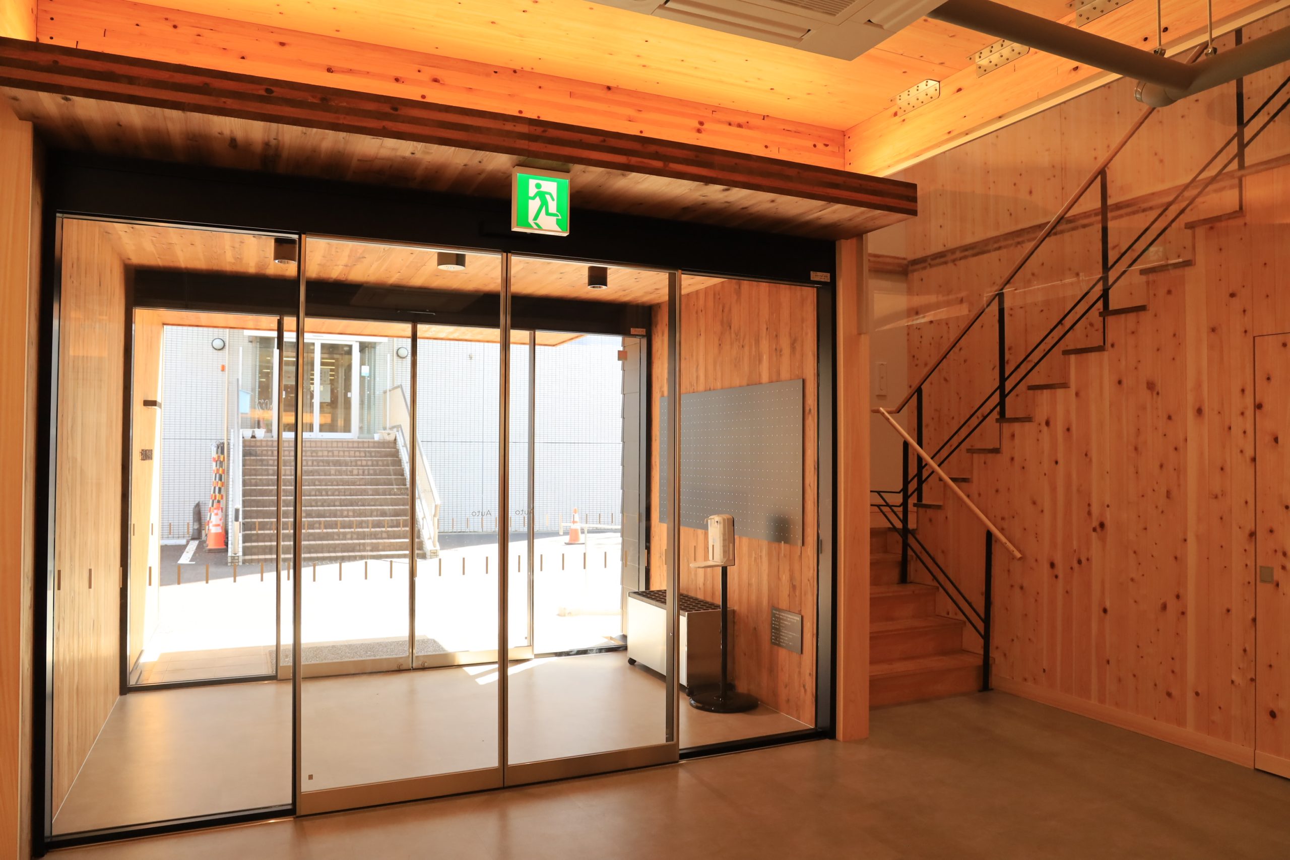 CLTパネルを活用し、耐震性や耐火性を有した建物です。
